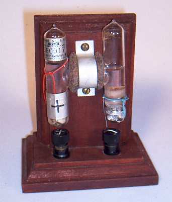 The standard cell is used as a reference voltage when measuring potentials with a potentiometer. The original design is due to the British engineer Latimer Clark, ca. 1878. The idea was to make a reproducible standard of EMF that could be used for practical work in electricity. The original design used zinc and mercury electrodes immersed in zinc and mercury sulphates. The English-American inventor and electrician, Edward Weston (1850-1936), patented an improved standard cell in 1893 that replaced zinc with cadmium. This cell's EMF changed very little with temperature, and it had a characteristic EMF of 1.0183 V at 20ºC. This cell, in the Greenslade Collection, was made by the Eppley Laboratory of Newport, Rhode Island. |